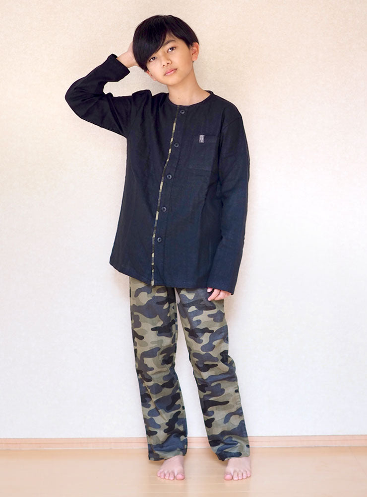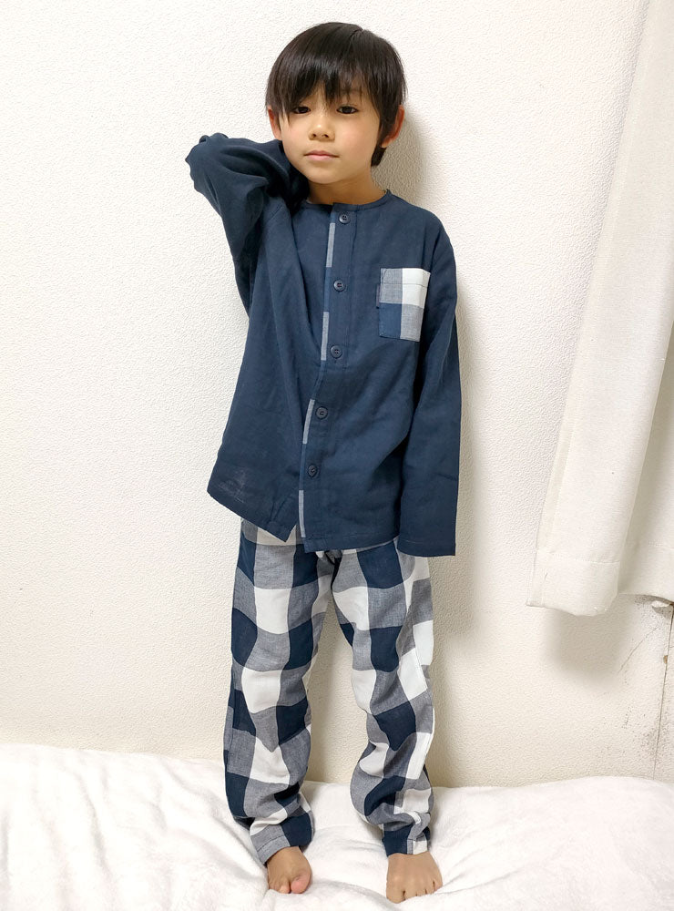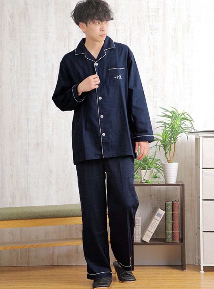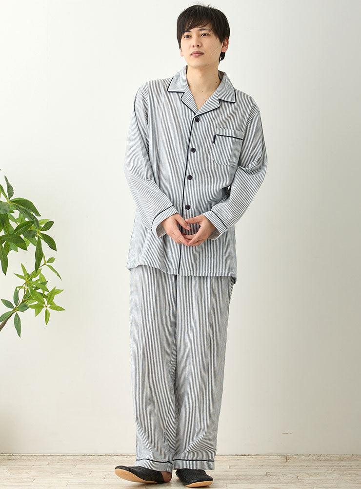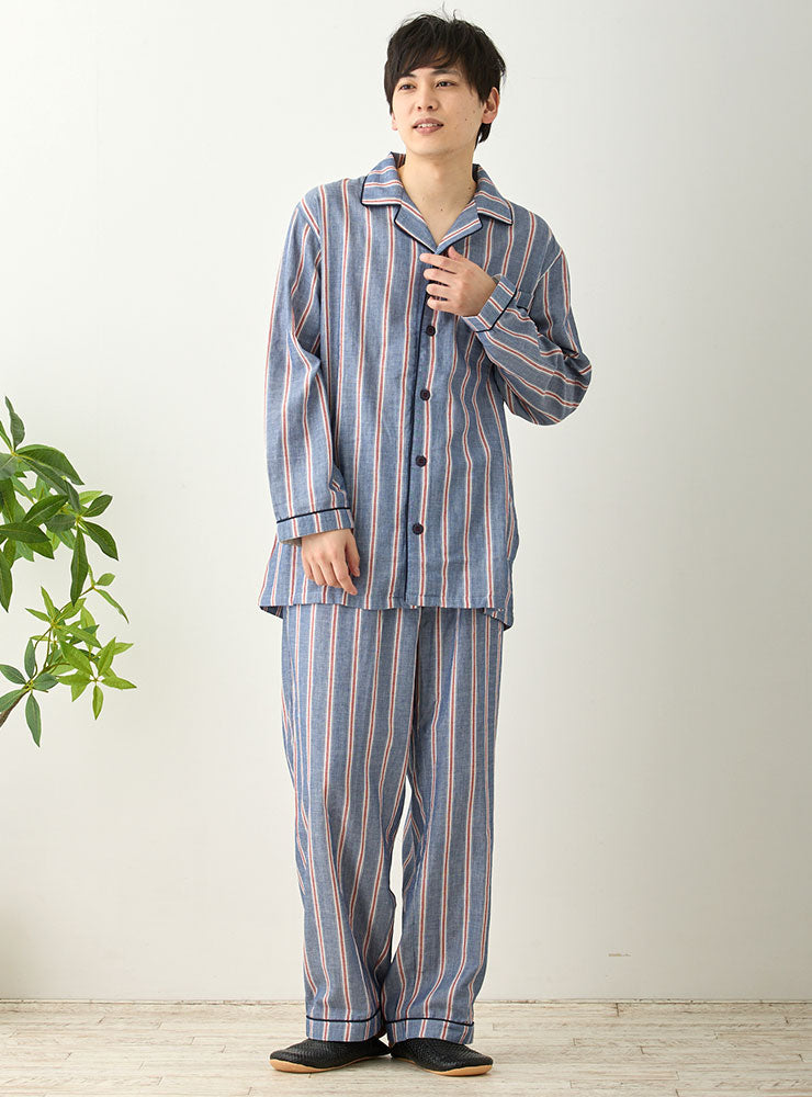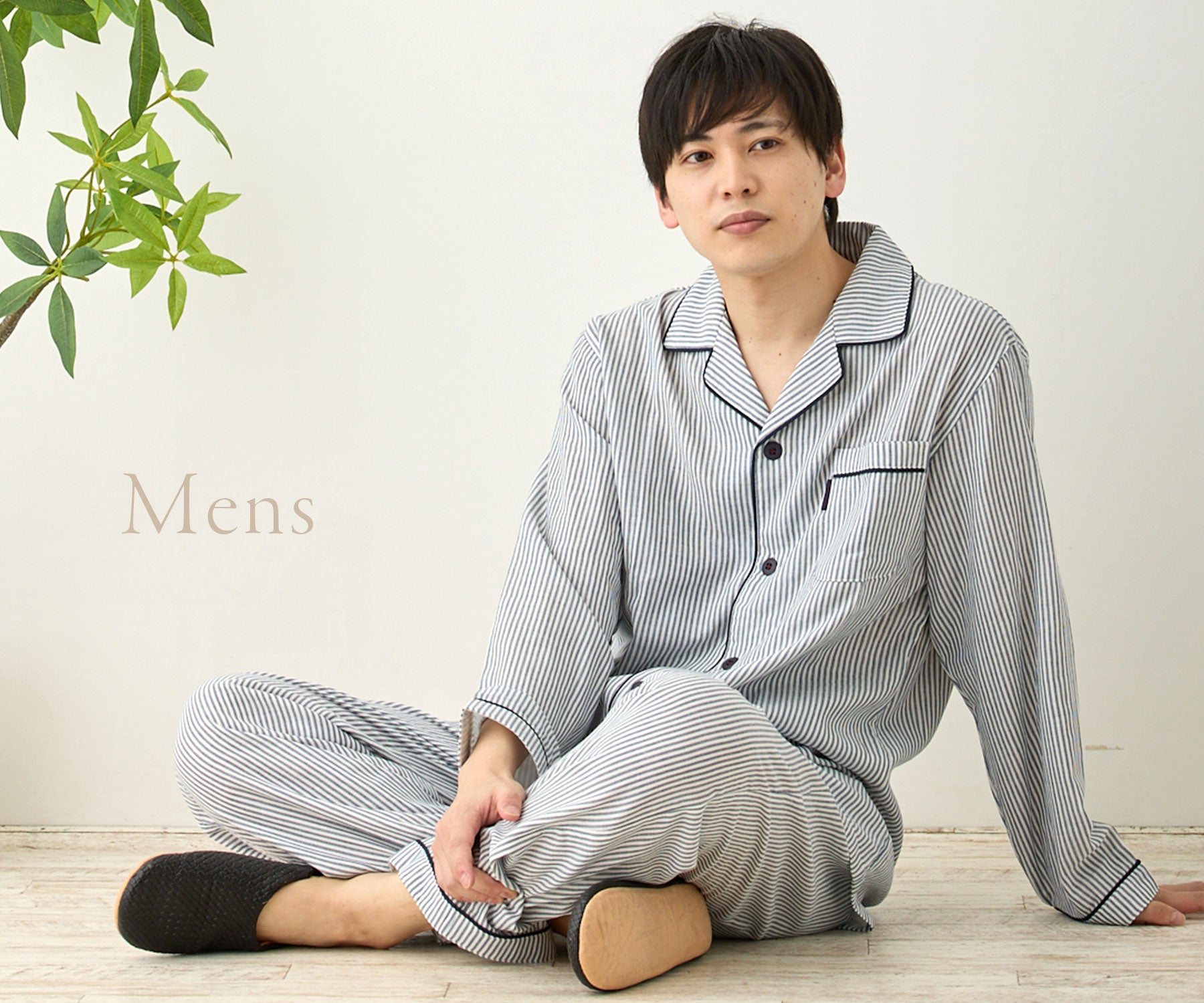 メンズ パジャマ 長袖 M L 父の日 [伸縮ダブルガーゼ] f00440