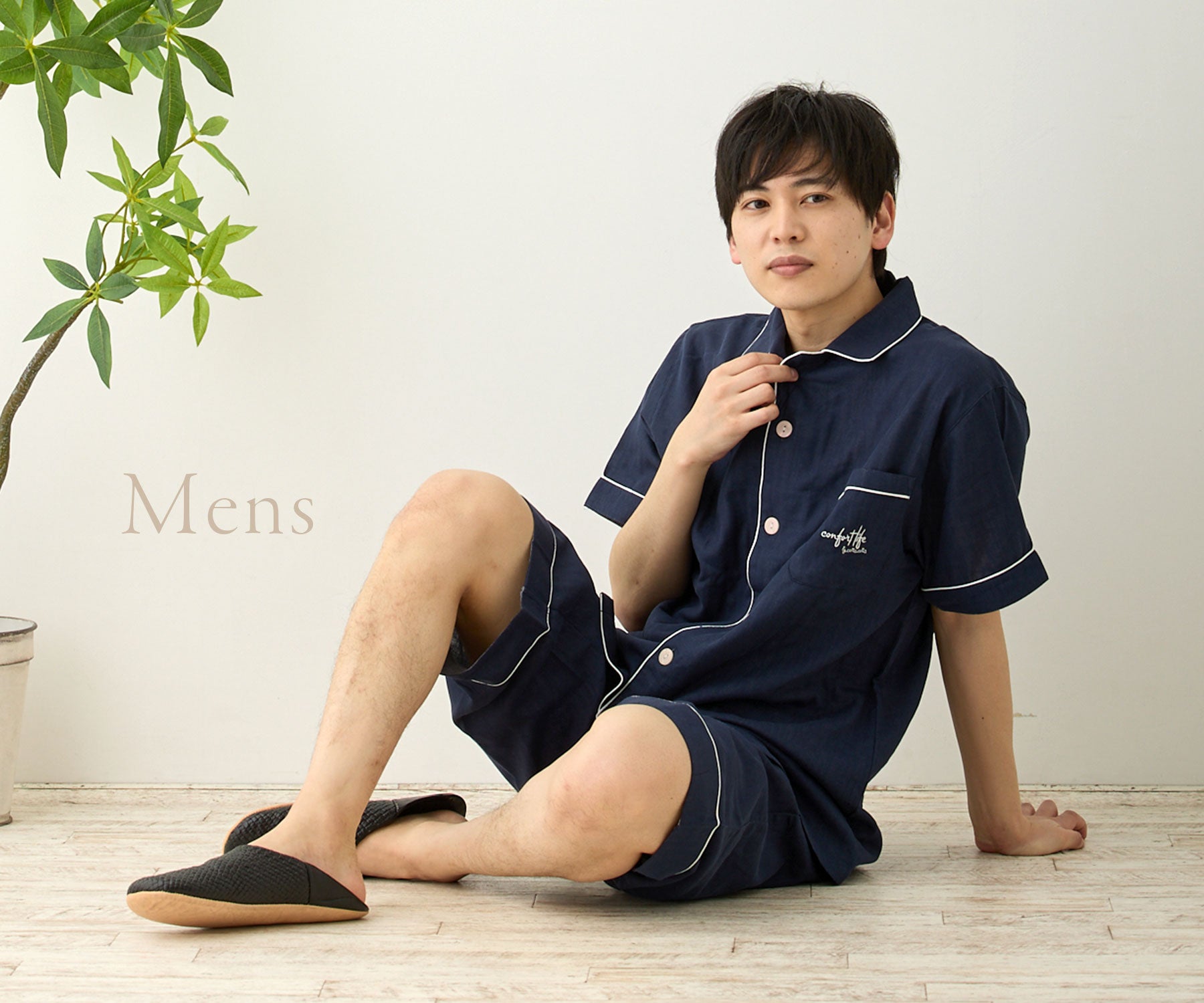 メンズ パジャマ 半袖 半ズボン ハーフパンツ 夏 M L XL 父の日 [綿100%ダブルガーゼ] f00395
